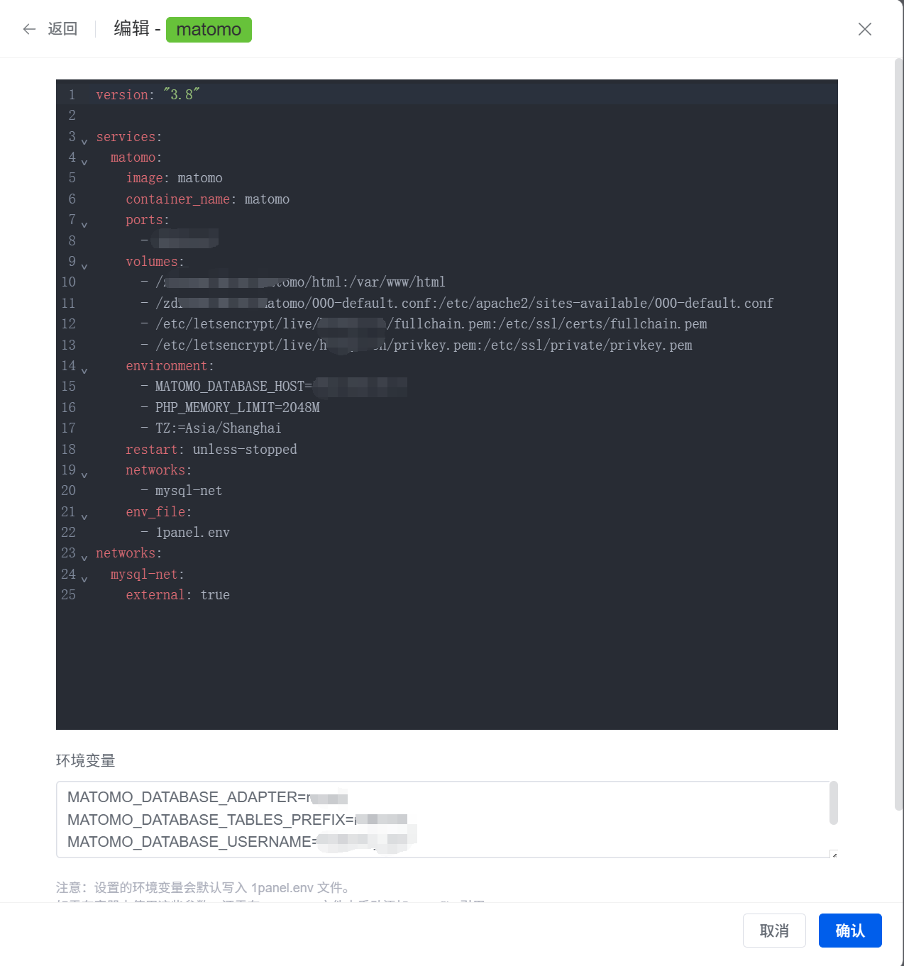 Matomo 在初始化安装完成后,会强制要求使用 HTTPS 访问。这本身是一个非常合理的安全设定,但问题在于,官方的 Docker 镜像中,默认的 Apache 服务并未开启 SSL 模块。这就导致了一个矛盾:如果我在 docker-compose 里直接将容器的 443 端口映射出来并配置好域名,Matomo 在首次启动时会因为自身 Apache 不支持 SSL 而启动失败。这是一个典型的“先有鸡还是先有蛋”的问题。
