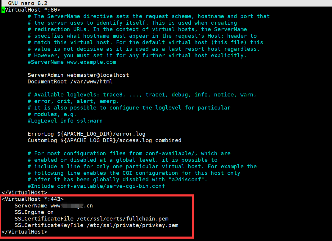 SSLCertificateKeyFile /etc/ssl/certs/privkey.pem